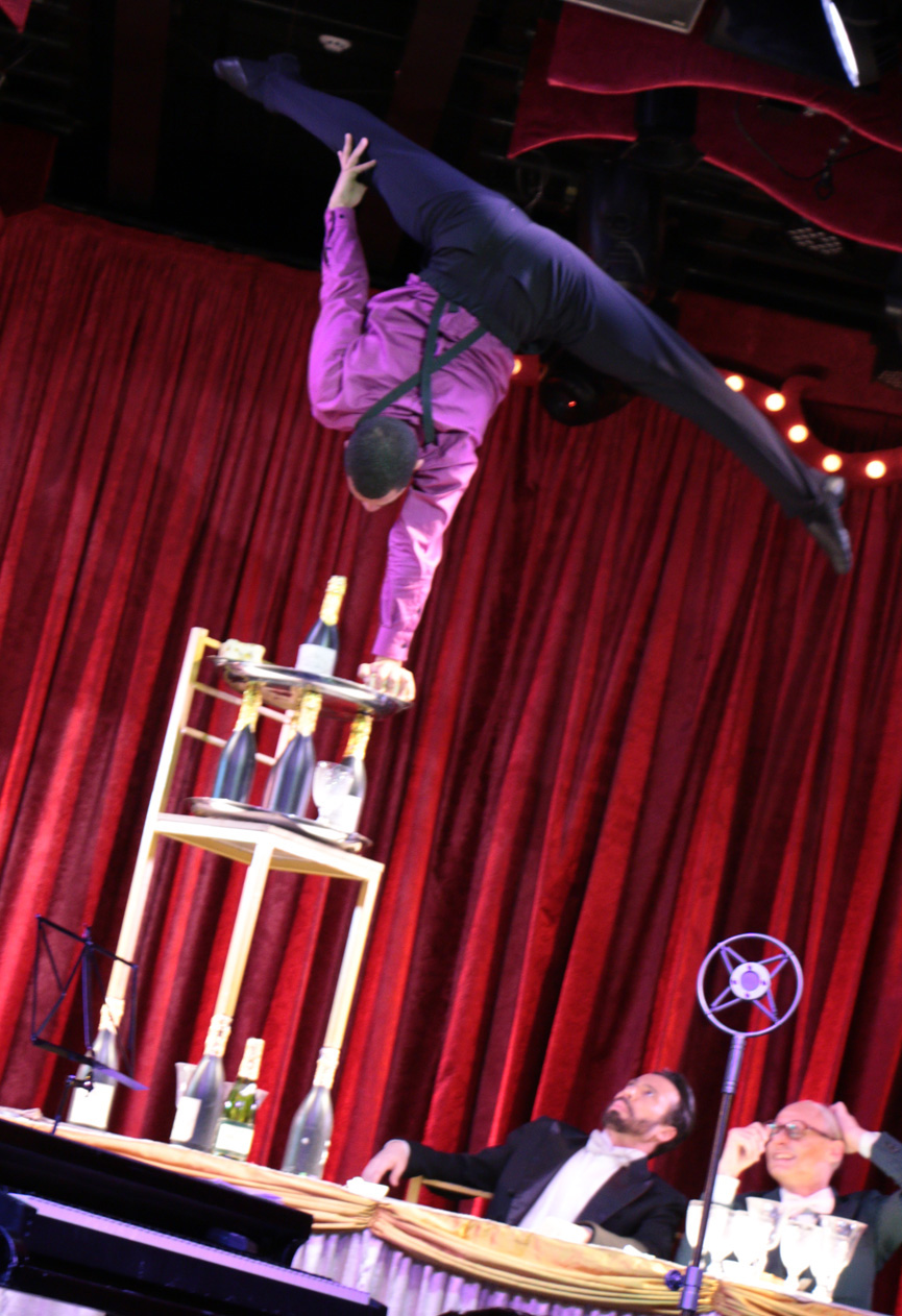 E o espetáculo de estreia, Banquete, conversa muitíssimo bem com o formato, já que como o próprio nome entrega, a peça conta a história de um milionário que dá um grande banquete em comemoração ao casamento de sua filha. Criado por Maicon Clenk, a produção traz a mistura de artes como ilusionismo, dança, teatro, circo, acrobacia, música e muito humor em performances pra lá de ousadas, integrando as características do burlesco em sua história: o belo, o grotesco, o sensual, o glamuroso e o caricato.